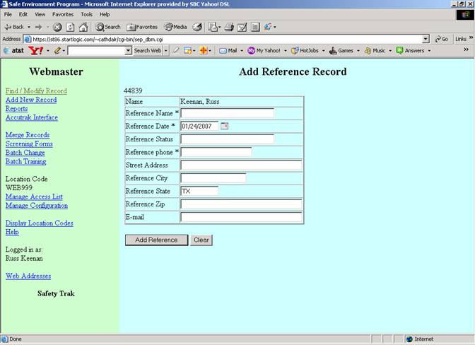The user would fill in the reference information and click on the “Add Reference” button.  The record for the person is then displayed.